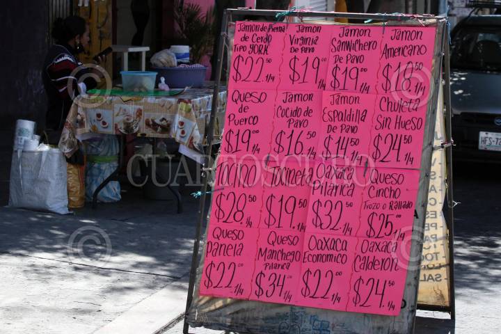 Los precios de algunos embutidos se pueden leer fuera de una tienda de abarrotes.