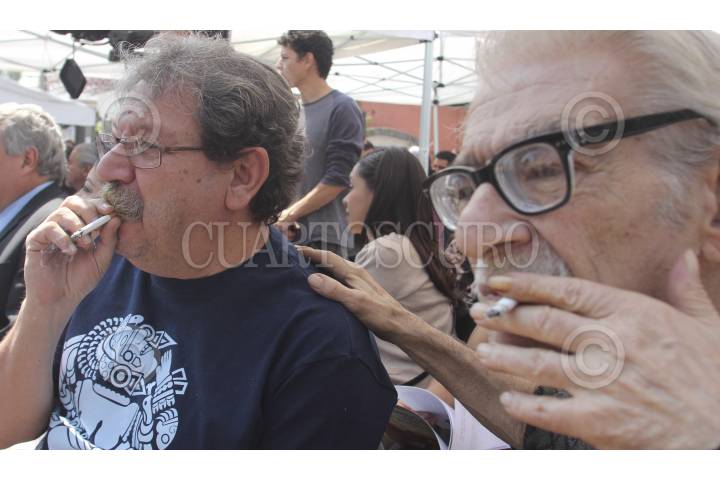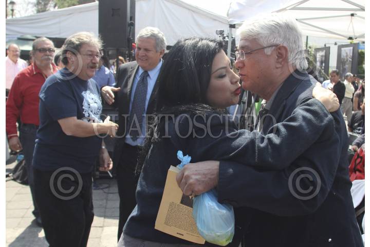 MÉXICO, D.F., 09ABRIL2012.- Los escritores Paco Ignacio Taibo II y Max Rojas, durante el inicio de Jornada de 400 horas de Lectura, que durara 18 días y promoverá dicha actividad en la demarcación. FOTO: SAÚL LÓPEZ /CUARTOSCURO.COM