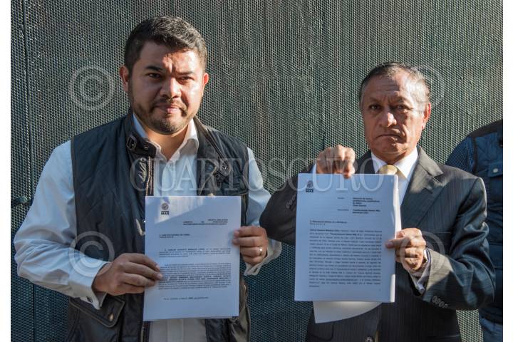 CIUDAD DE MÉXICO, 17JULIO2017.- Carlos Augusto Morales , y Emilio Serrano, dirigentes de “Somos Más” acudieron esta mañana a la Procuraduría General de la República (PGR) para interponer una denuncia en contra de Gerardo Ruíz Esparza, titular de Secretaría de Comunicaciones y Transportes (SCT), por los hechos posiblemente constitutivos de delito por lo ocurrido en el paso express Cuernavaca. FOTO: MARIO JASSO /CUARTOSCURO.COM