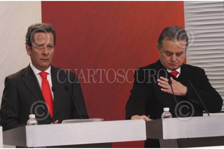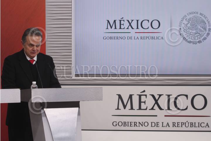 MÉXICO, D.F., 15ENERO2016.- Debido a la gira que el presidente Enrique Peña Nieto emprenderá en los Países Árabes, la secretaria de Relaciones Exteriores, Claudia Ruiz Massieu; el secretario de Economía, Ildefonso Guajardo; el de Energía, Pedro Joaquín Coldwell, y el vocero de Presidencia, Enrique Vázquez, ofrecieron una conferencia de prensa conjunta para dar detalles en torno a la gira de trabajo en Medio Oriente. FOTO: MARÍA JOSÉ MARTÍNEZ /CUARTOSCURO.COM