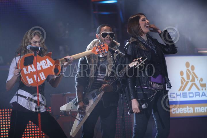 MÉXICO, D.F., 19OCTUBRE2008.- Se realizo una emision mas del reality show de los sueños sangre por sangre, en la imágen el cantante Pee Wee canta con Dulce Maria durante su participación en la emisión. FOTO: SÁSHENKA GUTIÉRREZ/CUARTOSCURO.COM