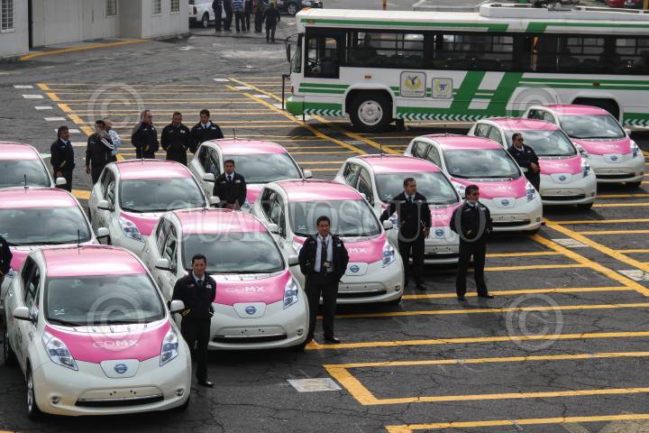 MÉXICO, D.F., 09JULIO2015.- El gobierno de la Ciudad de México y el Sistema de Transportes Eléctricos del Distrito Federal, lanzaron el servicio denominado “Taxis Eléctricos 0 emisiones”, que consta de 20 unidades 100% eléctricos que operaran por medio de un servicio telefónico (56-74-27-41) y tendrá una tarifa de: $27.30 de banderazo y un incremento de $1.84 cada 250 metros o cada 45 segundos, el horario de servicio será de 05:30 a 22:30 horas los 365 días del año. FOTO: ISABEL MATEOS /CUARTOSCURO.COM