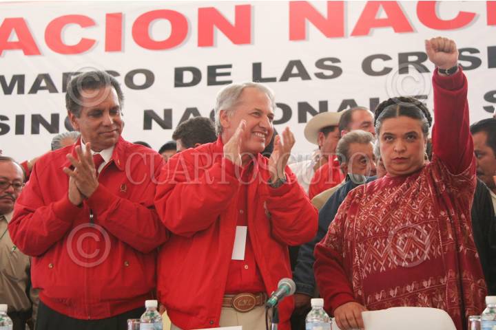 MÉXICO, D.F., 05ENERO2009.- Cruz Lopez, titular de la Confederación Nacional Campesina (CNC), Beatriz Paredes dirigente nacional del PRI y el diputado federal Cesar duarte durante la conmemoración del 94 aniversario de la ley agraria emitida por Venustiano Carranza, donde cientos del integrantes del CNC se congregaron en la casa del agraristas para celebrar esta fecha FOTO: RICARDO CASTELAN /CUARTOSCURO.COM