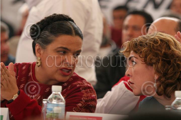 MÉXICO, D.F., 05ENERO2009.- Beatriz Paredes dirigente nacional del PRI e Ivonne Aracely Ortega gobernadora de Yucatan, durante la conmemoración del 94 aniversario de la ley agraria emitida por Venustiano Carranza, donde cientos del integrantes del CNC se congregaron en la casa del agraristas para celebrar esta fecha FOTO: RICARDO CASTELAN /CUARTOSCURO.COM