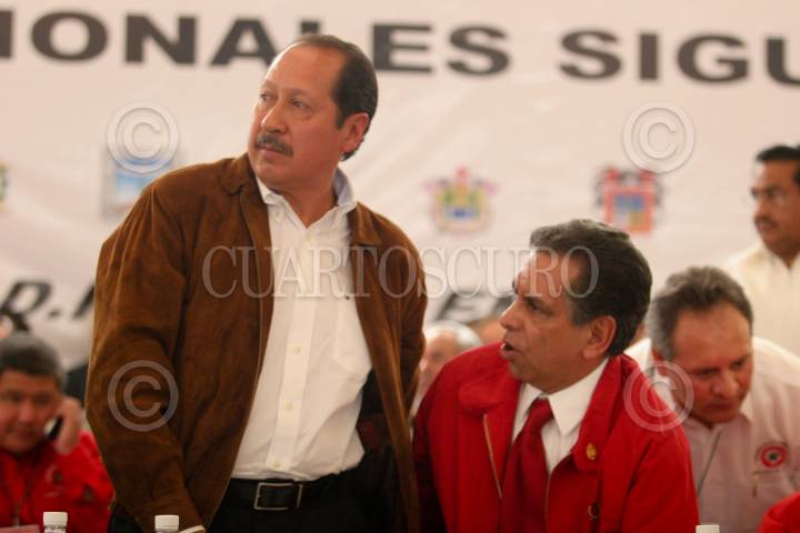MÉXICO, D.F., 05ENERO2009.- Leonel Godoy gobernador de Michoacan y Fidel Herrera gobernador de Veracruz, durante la conmemoración del 94 aniversario de la ley agraria emitida por Venustiano Carranza, donde cientos del integrantes del CNC se congregaron en la casa del agraristas para celebrar esta fecha FOTO: RICARDO CASTELAN /CUARTOSCURO.COM