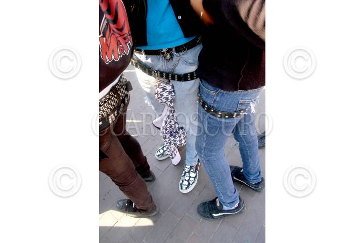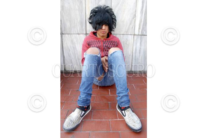 MÉXICO D.F., 19MARZO2008.- Los Emos, tribu urbana de adolescentes se caracteriza por cubrirse uno o los dos ojos con sus cabellos lacios, las mujeres usan prendedores de moños sobre sus cabezas, con sombras negras o de colores en sus ojos; ambos usan pantalones entubados dejando ver sus boxers con tenis sucios tipo vans o converse. FOTO: RODOLFO ANGULO/CUARTOSCURO.COM