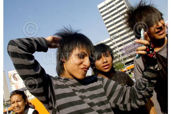 MÉXICO D.F., 19MARZO2008.- Los Emos, tribu urbana de adolescentes se caracteriza por cubrirse uno o los dos ojos con sus cabellos lacios y negros. FOTO: RODOLFO ANGULO/CUARTOSCURO.CO