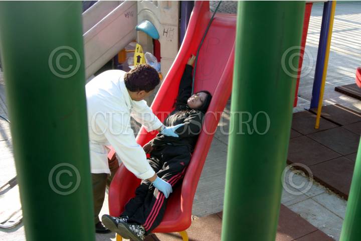 MÉXICO, D.F., 07ABRIL2008.- Una mujer de unos 22 años, que según la policía pertenece al grupo de los "emos", fue encontrada sin vida ahorcada con una manguera en los juegos mecánicos del parque de la calle General Pedro J. Meneses y General José Ceballos, en la colonia Daniel Garza. Por las circunstancias de los hechos, la policía investiga las causas del homicidio o suicidio. FOTO: PEDRO MARRUFO/CUARTOSCURO.COM