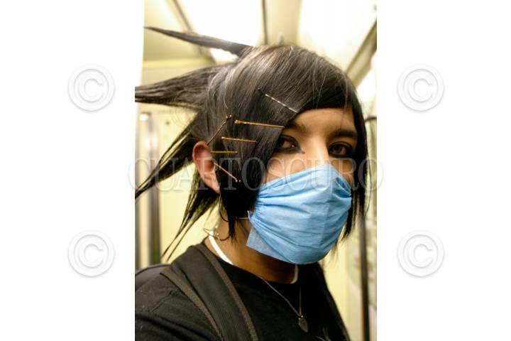 MÉXICO, D.F., 14FEBRERO2010.- Un joven que viaja en el Sistema de Transporte Colectivo Metro porta un cubre bocas para prevenir contagios de enfermedades o simplemente es parte del look que lo identifica entre las tribus urbanas de la ciudad de México como Punk. FOTO: MISAEL VALTIERRA/CUARTOSCURO.COM