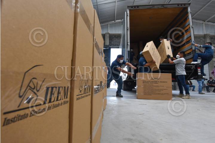 Empaquetado de material electoral del Instituto Electoral del Estado de México para las elecciones locales el próximo 6 de junio.