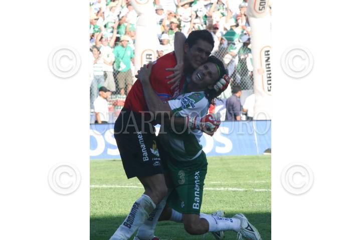 TORREON, COAHUILA 01JUNIO2008 El argentino Fernando Ortiz del equipo santos celebra con la copa del campeonato el haberse coronado como campeones del torneo de Clausura 2008, tras empatar en el partido de vuelta 1-1 (3-2 global) ante el Cruz Azul FOTO: SASHENKA GUTIERREZ/CUARTOSCURO.COM