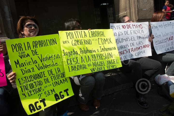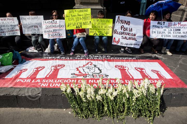 CIUDAD DE MÉXICO, 10MAYO2018.- Madres trabajadoras de diferentes departamentos del ayuntamiento de la CDMX, se manifestaron hoy en su día afuera de las instalaciones de gobierno para exigir que se les paguen sus salarios retenidos y paren los despidos injustificados. FOTO: TERCERO DÍAZ /CUARTOSCURO.COM
