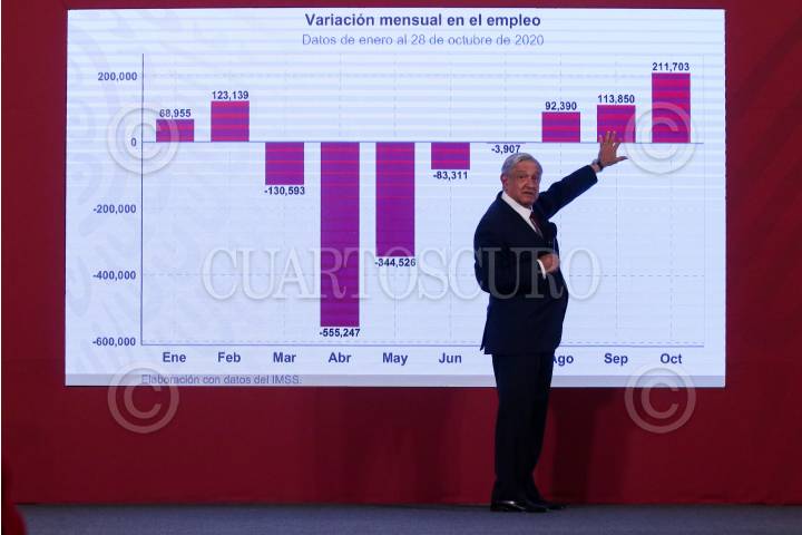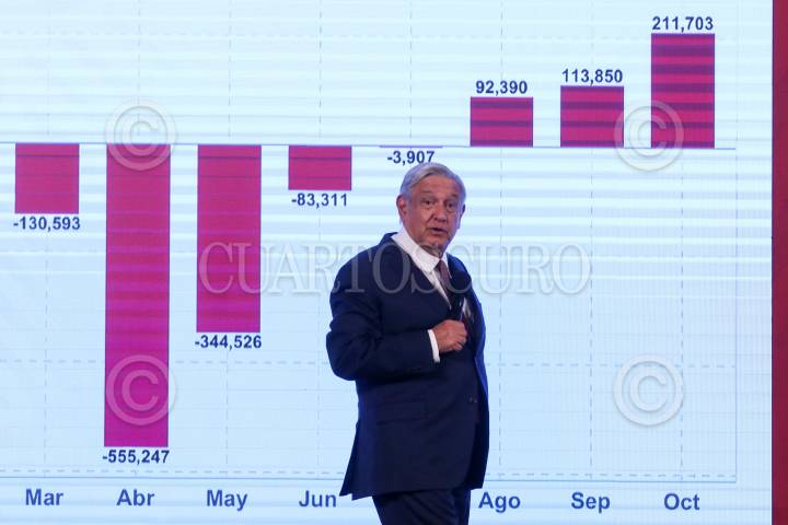 Andrés Manuel Löpez Obrador durante la conferencia matutina donde anunció un crecimiento en la economía de 12% durante el tercer trimestre del año.