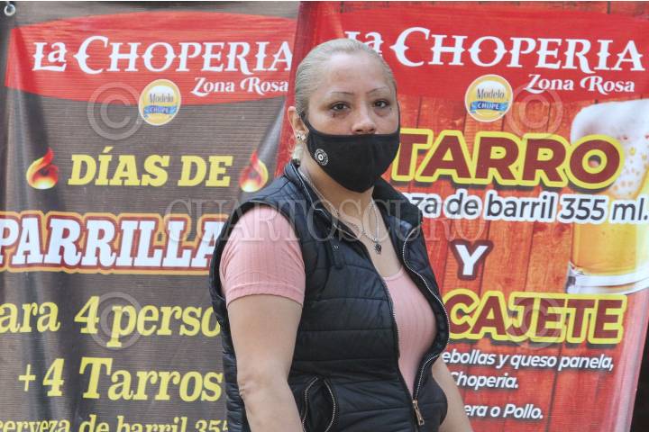 Una trabajadora muestra promociones en bebidas a clientes en un bar de la Zona Rosa. FOTO: ROGELIO MORALES /CUARTOSCURO.COM