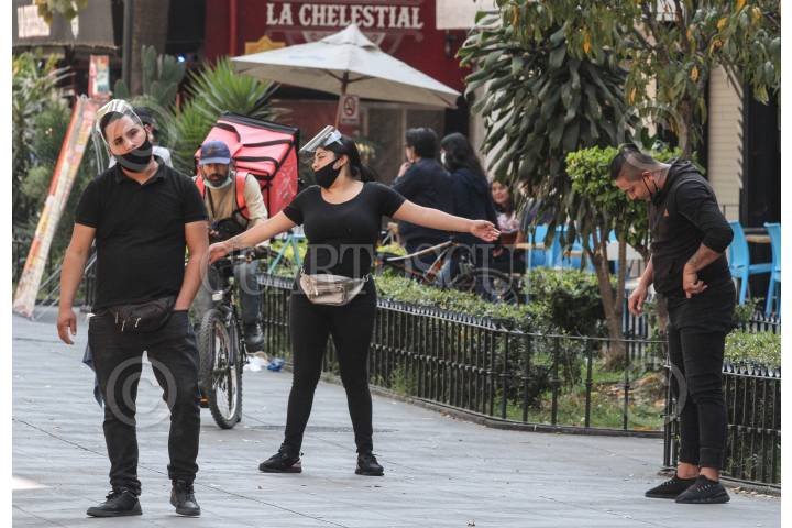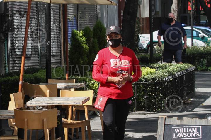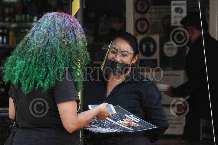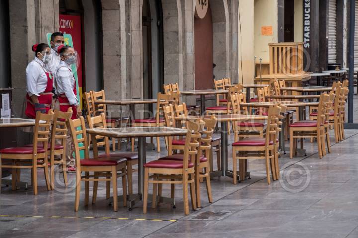 Trabajadores de bares, se muestran aburridos, mientras esperan posibles comensales para abordarlos. FOTO: ROGELIO MORALES /CUARTOSCURO.COM