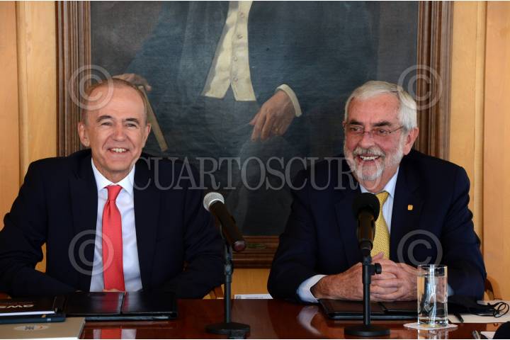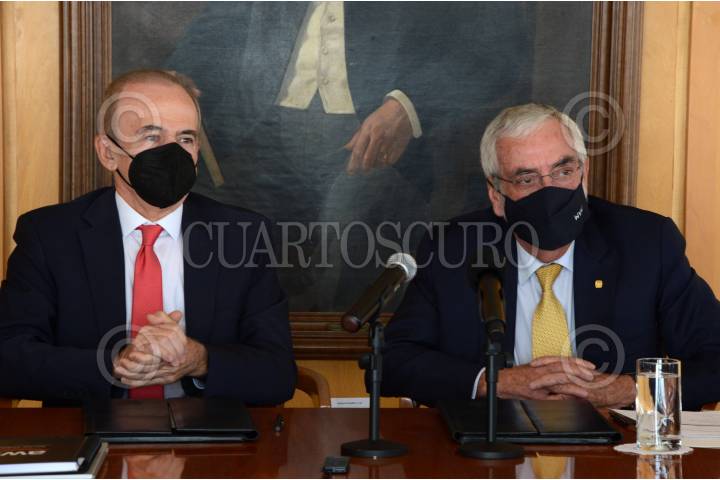 Enrique Graue Wiechers y Guillermo Almada durante la firma del acuerdo entre la UNAM y Amazon Web Services (AWS).