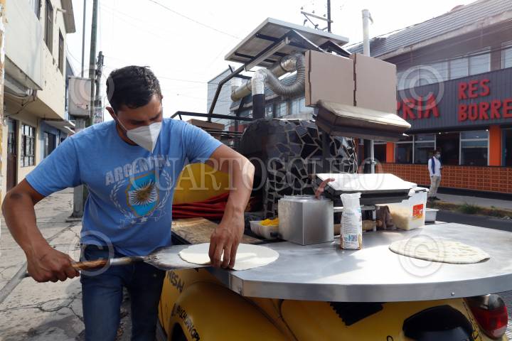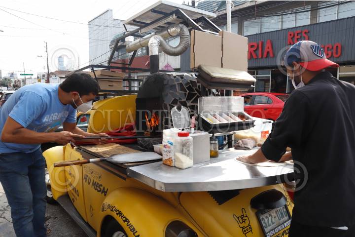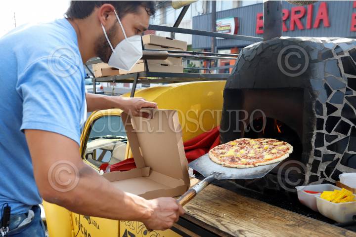 Miguel Vázquez adecuó un automóvil Volkswagen para elaborar pizzas artesanales en horno de leña bajo el nombre de "Vochorno Pizza Móvil"
