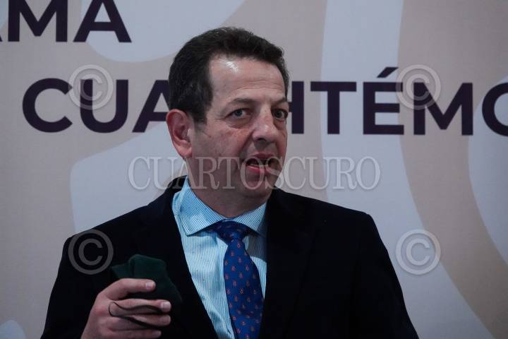 José de Jesús Rodríguez Cárdenas, presidente de la Cámara de Comercio de la Ciudad de México (CANACO), durante la presentación del programa Jóvenes Construyendo el Futuro en la alcaldía Cuauhtémoc.