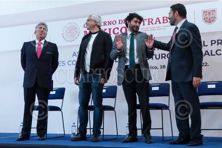 José de Jesús Rodríguez Cárdenas, presidente de la Cámara de Comercio de la Ciudad de México (CANACO); José Luis Rodríguez Díaz de León, secretario de trabajo capitalino; Marath Baruch Bolaños, subsecretario de Empleo y Productividad Laboral, y
