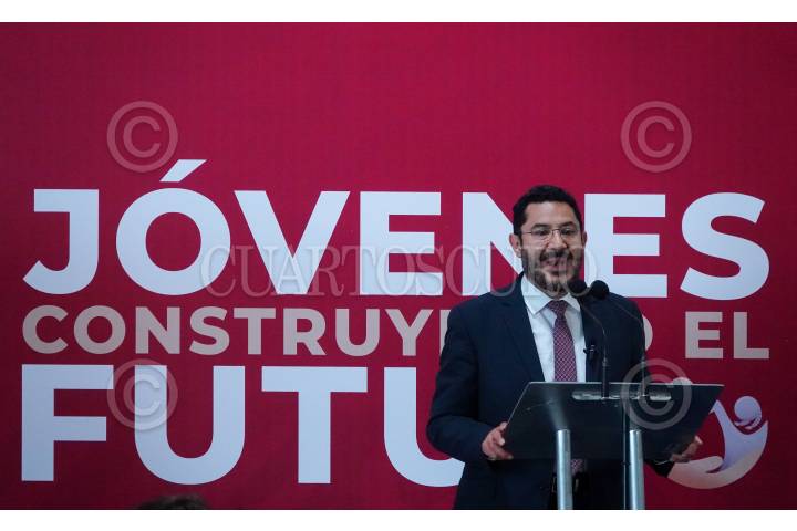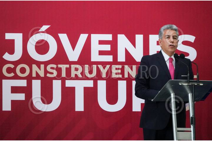 Martí Batres durante la presentación del programa Jóvenes Construyendo el Futuro en la alcaldía Cuauhtémoc.
