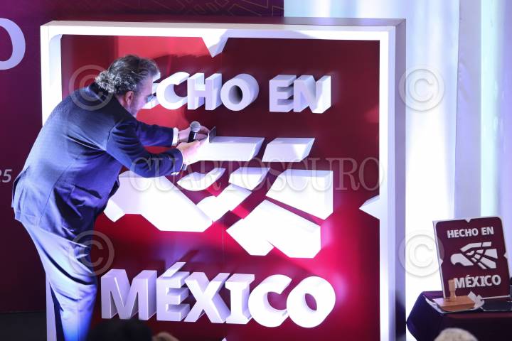 CIUDAD DE MÉXICO, 18FEBRERO2025.- Marcelo Ebrard, secretario de Economía, encabezó el evento del lanzamiento de la marca "Hecho en México". FOTO: DANIEL AUGUSTO/ CUARTOSCURO.COM