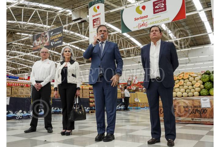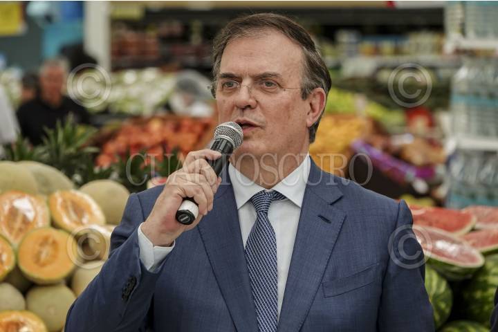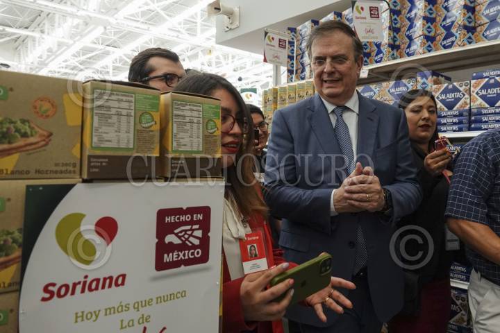 CIUDAD DE MÉXICO, 07MARZO2025.- Marcelo Ebrard, secretario de Economía, encabezó el arranque de la campaña “Hecho en México”, acción impulsada por el llamado Plan México a fin de motivar la compra y consumo de marcas y productos mexicanos que se distribuyen en las tiendas de conveniencia y supermercados del país. FOTO: GALO CAÑAS/CUARTOSCURO.COM