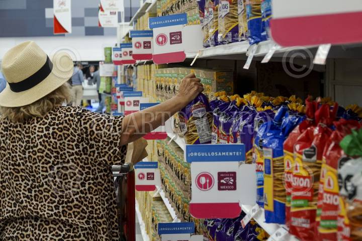 CIUDAD DE MÉXICO, 07MARZO2025.- Una mujer elige un paquete de tostadas que forman parte de los productos de la campaña “Hecho en México”. Que forma parte de las acciones impulsadas por el llamado Plan México con el fin de motivar la compra y consumo de marcas y productos mexicanos que se distribuyen en las tiendas de conveniencia y supermercados del país. FOTO: GALO CAÑAS/CUARTOSCURO.COM