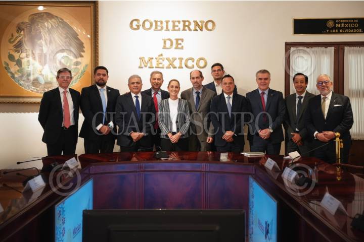 CIUDAD DE MÉXICO, 21MAYO2025.- Claudia Sheinbaum, presidenta de México, se reunió está tarde en Palacio Nacional con empresarios del acero y concreto. FOTO: PRESIDENCIA/CUARTOSCURO.COM