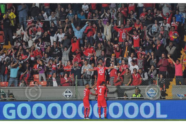 TOLUCA, ESTADO DE MÉXICO, 29NOVIEMBRE2015.-El colombiano Fernando Uribe festeja el gol con el que da la victoria al club Toluca sobre los camoteros de Puebla, durante el partido de Cuartos de final del torneo Apertura 2015, en el estadio Nemesio Diez. FOTO: DIEGO SIMON SANCHEZ /CUARTOSCURO.COM