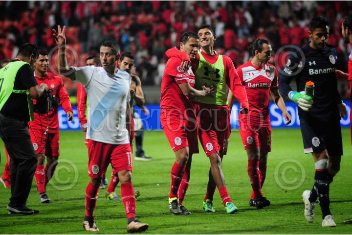 TOLUCA, ESTADO DE MÉXICO, 29NOVIEMBRE2015.-José Saturnino Cardozo, director técnico del Toluca y sus jugadores, festejan el pase a semifinales del torneo Apertura 2015 luego de vencer tres goles sobre dos en marcador global a Puebla, en el estadio Nemesio Diez. FOTO: DIEGO SIMON SANCHEZ /CUARTOSCURO.COM