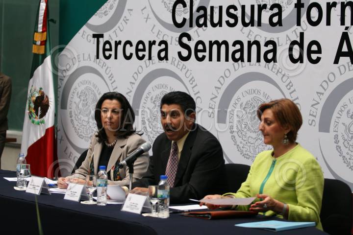 MÉXICO D.F. 30MAYO2008.-Se realizó la clausura formal de la tercera semana de África en México esto en el Senado de la Republica. En la imagen, María de Lourdes Aranda, subsecretaria de Relaciones Exteriores, el Senador presidente de la comisión de Relaciones exteriores, Salomón Jara Cruz y Ana Luisa Fajer Flores, directora general de la secretaria de relaciones exteriores. FOTO: GUILLERMO PEREA/CUARTOSCURO.COM