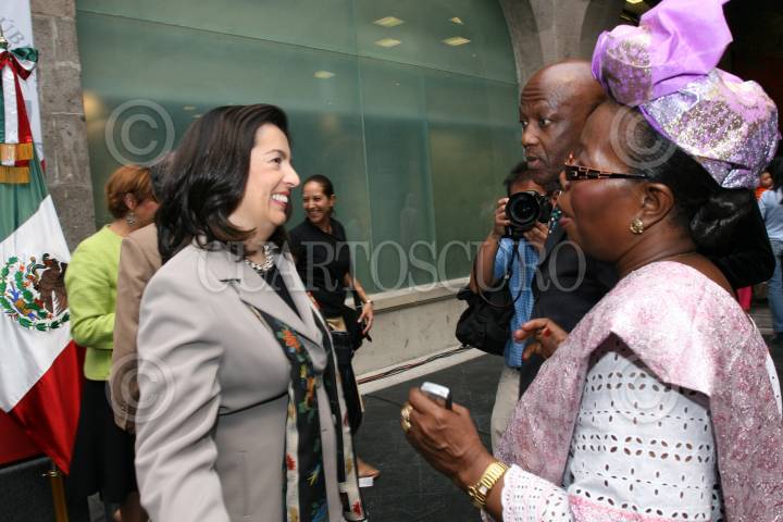 MÉXICO D.F. 30MAYO2008.-Se realizó la clausura formal de la tercera semana de África en México esto en el Senado de la República. En la imagen, María de Lourdes Aranda, subsecretaria de Relaciones Exteriores, y los embajadores Anne Gnahounet, embajadora de Costa de Marfil y Mphakama N. embajador de Sudafrica. FOTO: GUILLERMO PEREA/CUARTOSCURO.COM