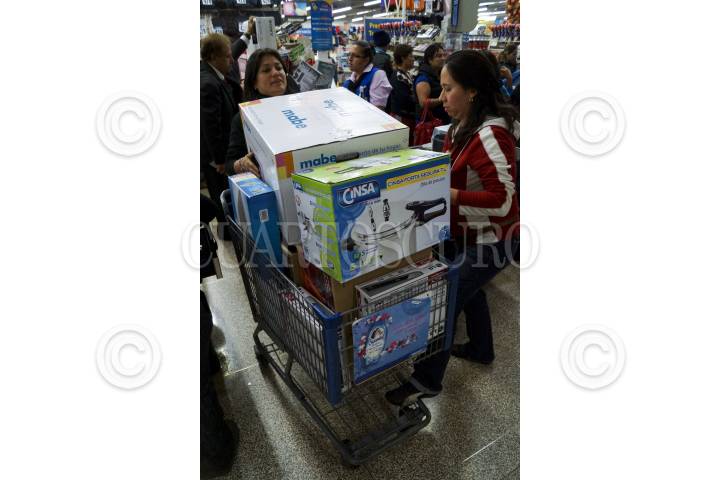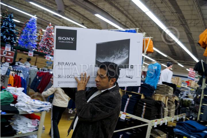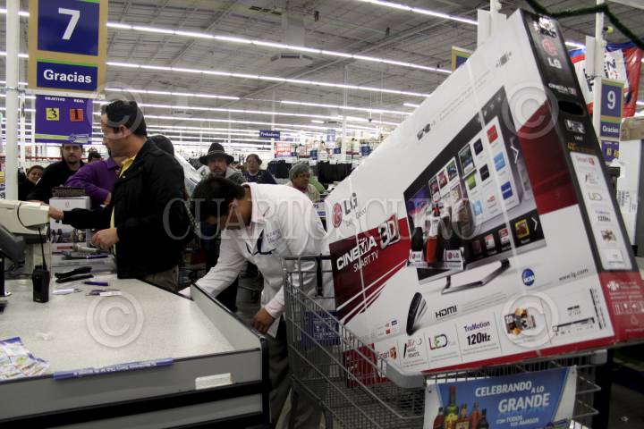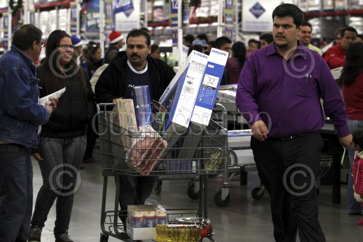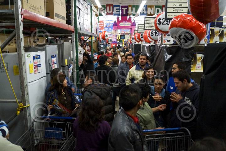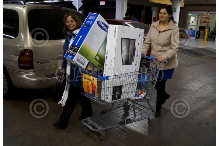 MÉXICO, D.F., 16NOVIEMBRE2012.- Como parte del programa el Buen Fin, cientos de personas compran productos y mercancías, en su mayoría electrodomésticos, en la transnacional Walmart, en su sucursal Universidad. La tienda, en punto de las 00:00, puso en exhibición los artículos con descuento o algunos a crédito con pagos sin intereses para que la gente pudiera adquirirlos. FOTO: ADOLFO VLADIMIR /CUARTOSCURO.COM