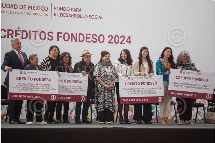 CIUDAD DE MÉXICO, 05DICIEMBRE2024.- Clara Brugada, Jefa de Gobierno de la Ciudad, encabezó la entrega de créditos Fondeso, en el Monumento a la Revolución. FOTO: ANDREA MURCIA /CUARTOSCURO.COM