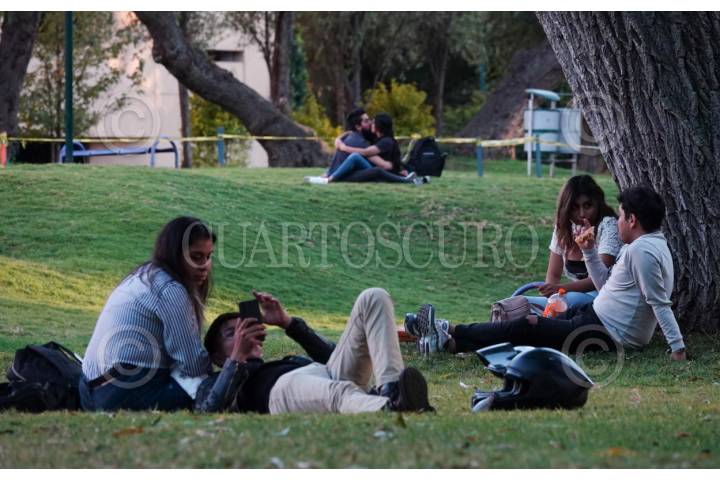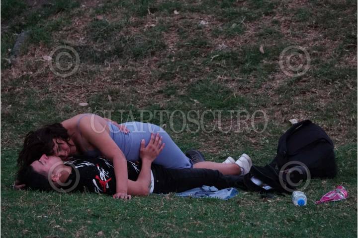 CIUDAD DE MÉXICO, 25ENERO2024.- Parejas de enamorados se besan en los pastos del Centro Nacional de las Artes. FOTO: GRACIELA LÓPEZ /CUARTOSCURO.COM