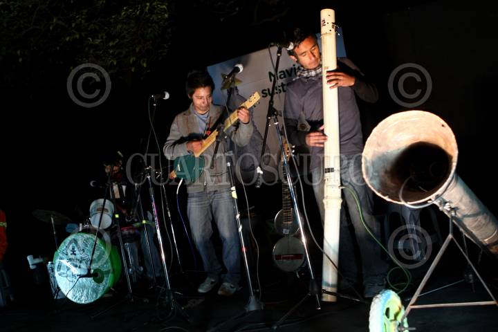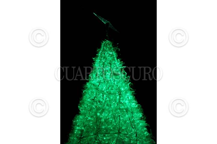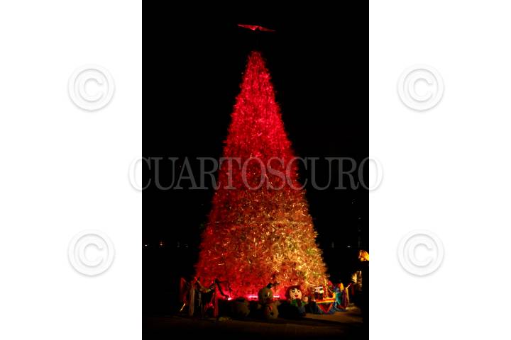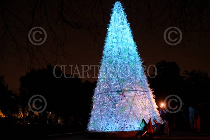 MÉXICO, D.F., 18DICIEMBRE2010.- Martha Delgado, secretaria del Medio Ambiente del Distrito Federal encabezo el encendido de un árbol de navidad de 10 metros de altura el cual esta cubierto con botellas de PET, con iluminación de leds y que a su vez esta conectado a una planta de luz que es alimentada con biodiesel, este árbol se encuentra en la explanada del Jardín Botánico del Bosque de Chapultepec. El evento estuvo amenizado por la Banda Basura, un grupo que toca con instrumentos hechos de basura reciclable. FOTO: RODOLFO ANGULO/CUARTOSCURO.COM