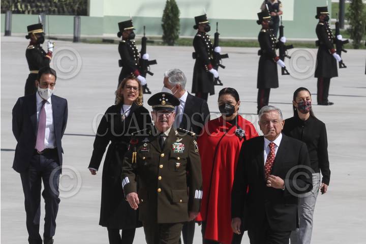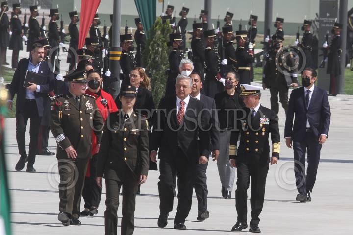 Andrés Manuel López Obrador la termino de la Ceremonia del 108 Aniversario Ejército Nacional.
