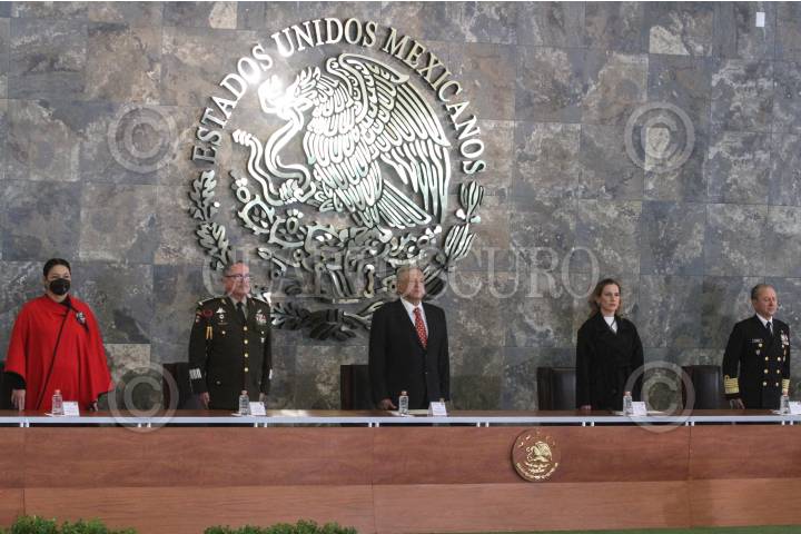Andrés Manuel López Obrador durante su participación en la Ceremonia del 108 Aniversario Ejército Nacional.