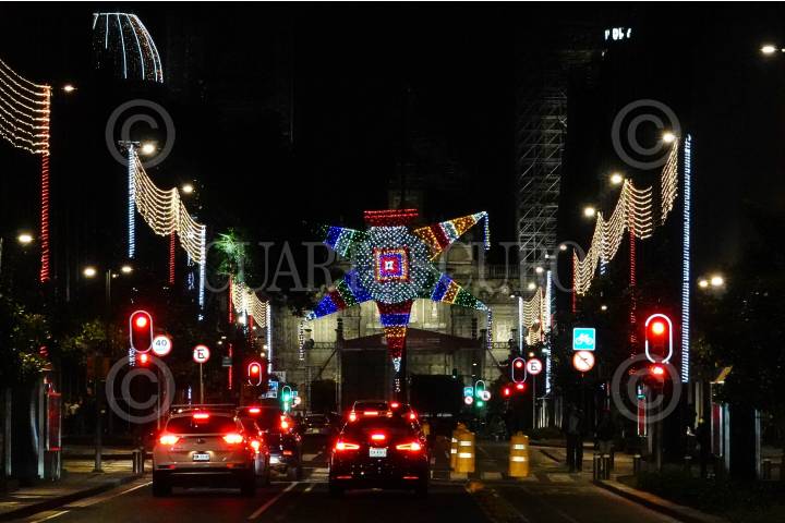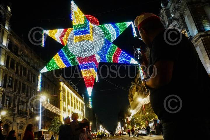 Alumbrador con motivo de las fiestas Decembrinas en el Zócalo de la Ciudad.