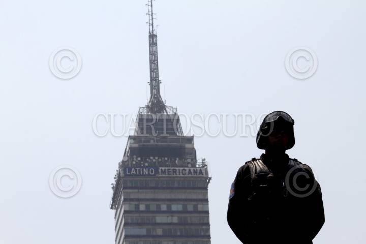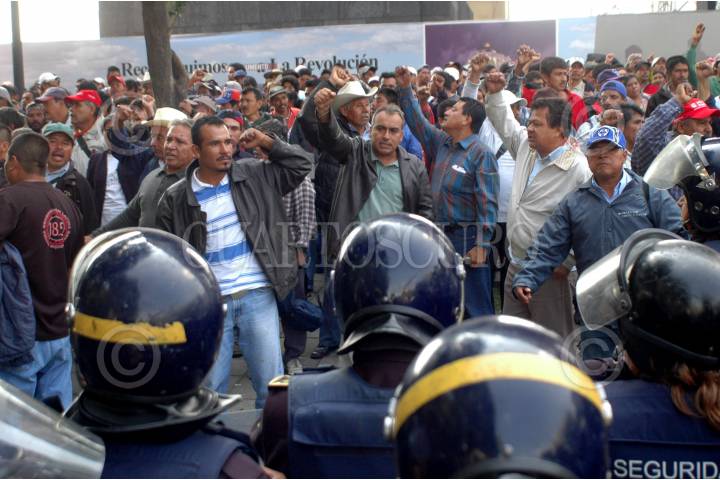 MÉXICO, D.F., 12AGOSTO2009.- Integrantes de los cuatrocientos pueblos, se manifestaron en las inmediaciones del Monumento a la Revolución en donde fueron encapsulados por elementos del cuerpo de granaderos para evitar que hicieran desmanes. Por lo que se registraron algunos roces entre estos. FOTO: LUIS CARBAYO/CUARTOSCURO.COM