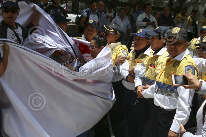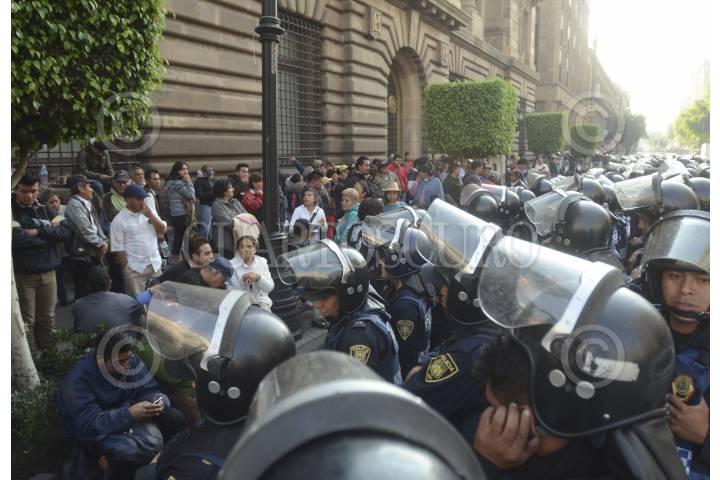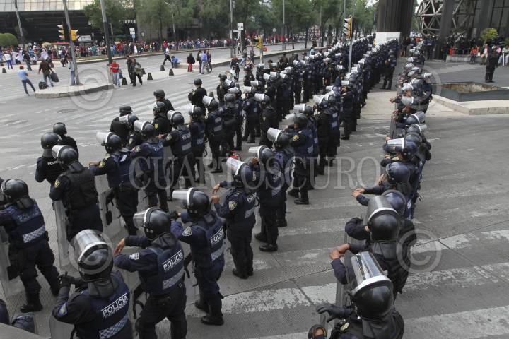 CIUDAD DE MÉXICO, 25MAYO2016.- Un grupo de maestros de la Coordinadora Nacional de Trabajadores de la Educación (CNTE), intentaron llegar al zócalo capitalino para manifestarse contra la Reforma Educativa fueron encapsulados por granaderos de la Secretaría de Seguridad Pública (SSPCDMX), en la calle de 5 de Mayo y Eje Central. FOTO: ARMANDO MONROY /CUARTOSCURO.COM