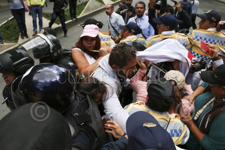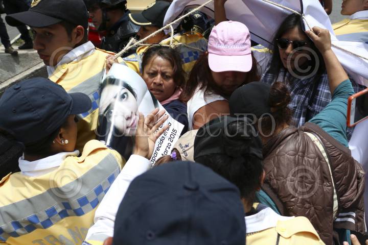 CIUDAD DE MEXICO, 20JULIO2016.- Familiares de personas desapacidas fueron encapsulados y replegados por elementos de la Policia de la Ciudad de México tras intertar instalar un plantón permanente sobre la avenida Paseo de la Reforma, los inconformes exigian una audiencia con la procuradora Arely Gomez González. FOTO: SAÚL LÓPEZ /CUARTOSCURO.COM