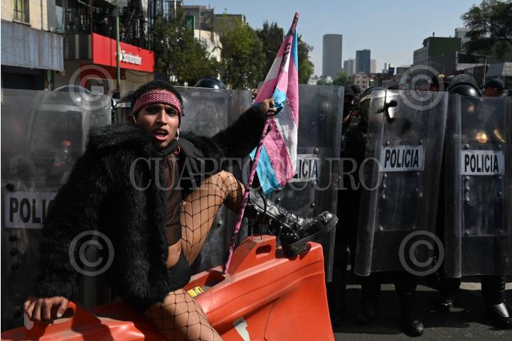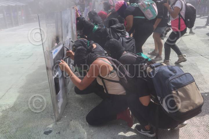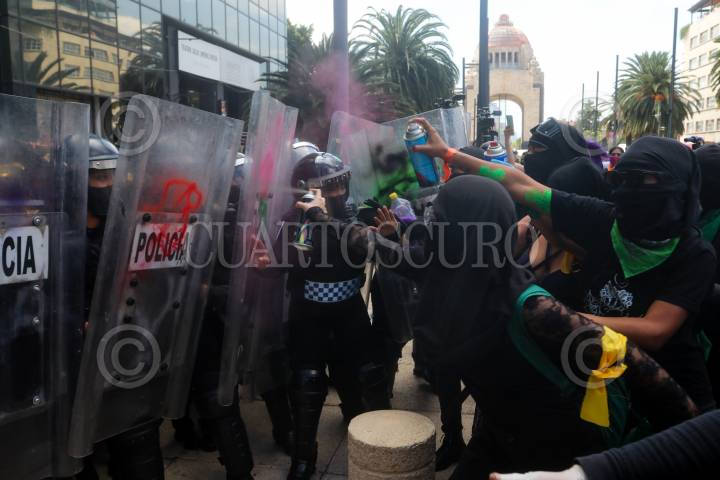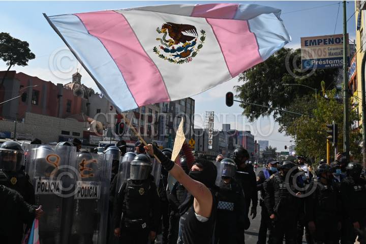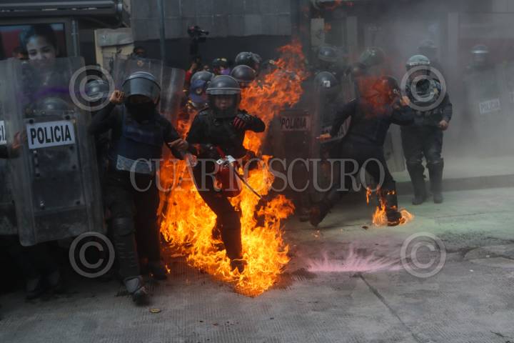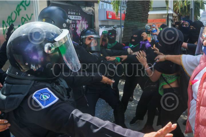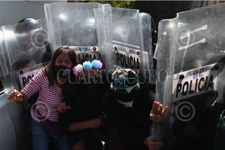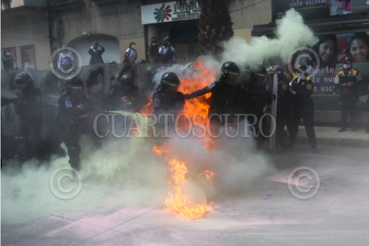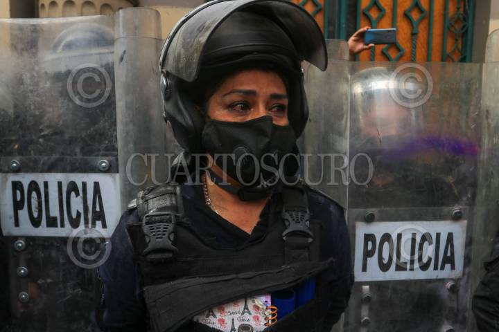 Elementos de la policía encapsularon a mujeres de diferentes colectivas feministas que protestaron por la desaparición de la joven Karla en avenida Juárez