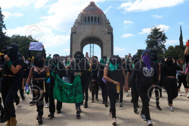 Diferentes colectivas feministas protestaron por la desaparición de la joven Karla en EL Monumento a la Revolución
