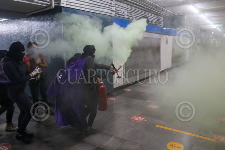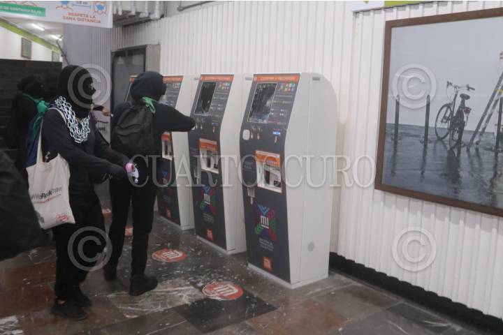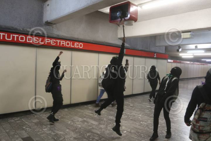 Mujeres encapuchadas realizaron una acción en las estaciones del metro San Cosme e Hidalgo en donde rompieron parte del inmobiliario con martillos.