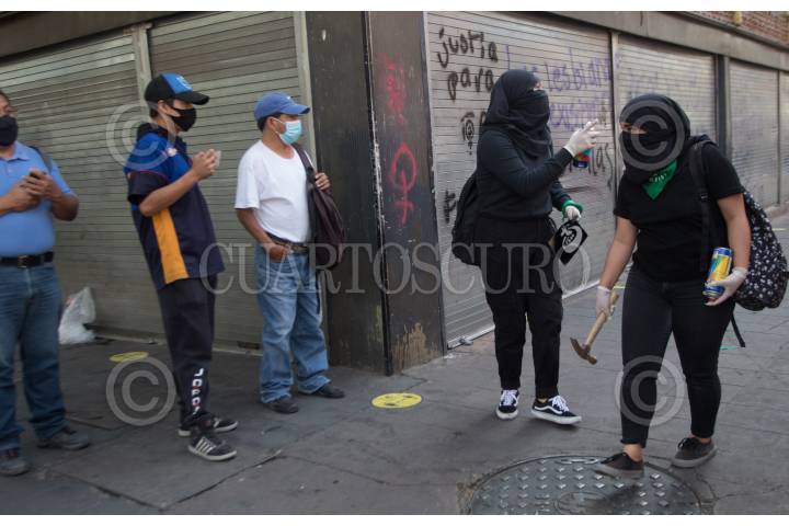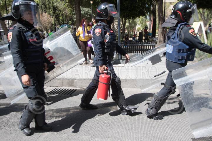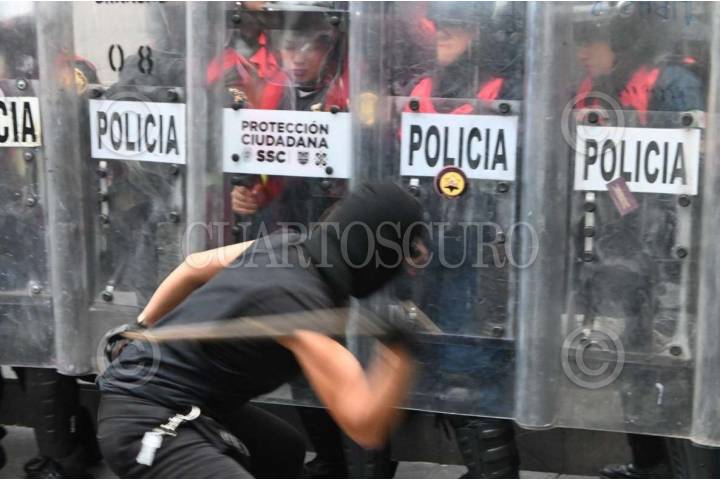 CIUDAD DE MÉXICO, 28SEPTIEMBRE2024.- Jóvenes encapuchadas se enfrentaron con mujeres integrantes de la Secretaría de Seguridad Ciudadana (SSC) durante la marcha por el "Día de acción Global por el Aborto Legal, Seguro y Gratuito". FOTO: ALFREDO DÁVILA/CUARTOSCURO.COM