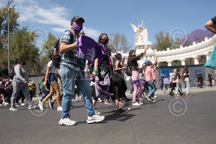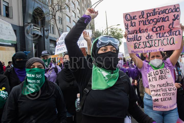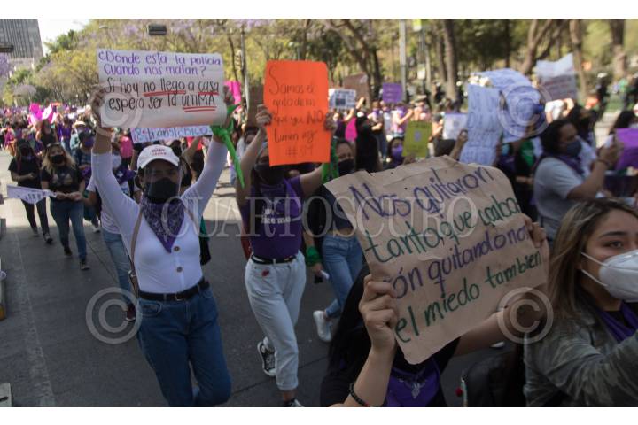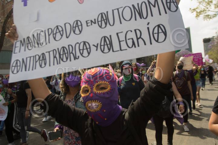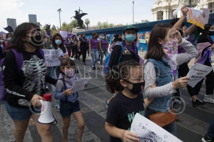 Feministas, mujeres y niñas hasta mujeres de edad adulta mayor acudieron a la marcha por el dñia internacional de la Mujer