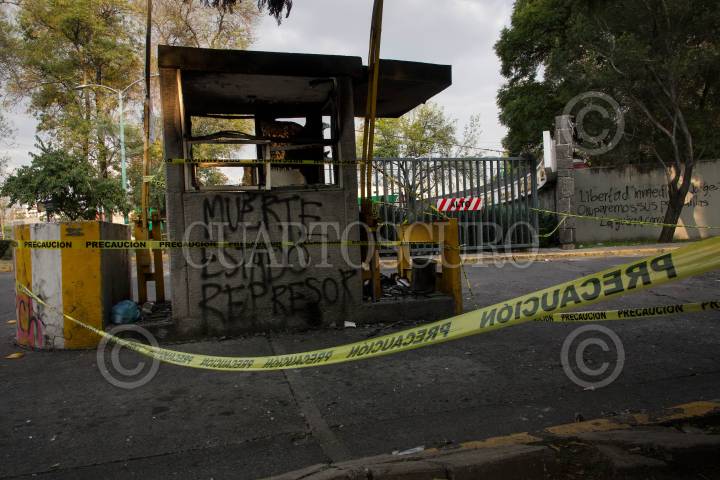 Integrantes del Bloque Negro rompieron vidrios en el metro Lindavista, en el marco de una protesta que realizaron en la inmediaciones del IPN, por diversos de acoso sexual que han quedado impunes.