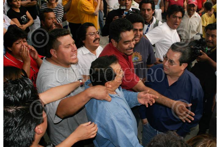 MÉXICO D.F., 21ABRIL2008.- Simpatizantes de Alejandro Encinas se encararon y realizaron un zafarrancho con simpatizantes de Jesus Ortega a las afueras del Consejo Nacional del PRD. FOTO: SAÚL LÓPEZ/CUARTOSCURO.COM