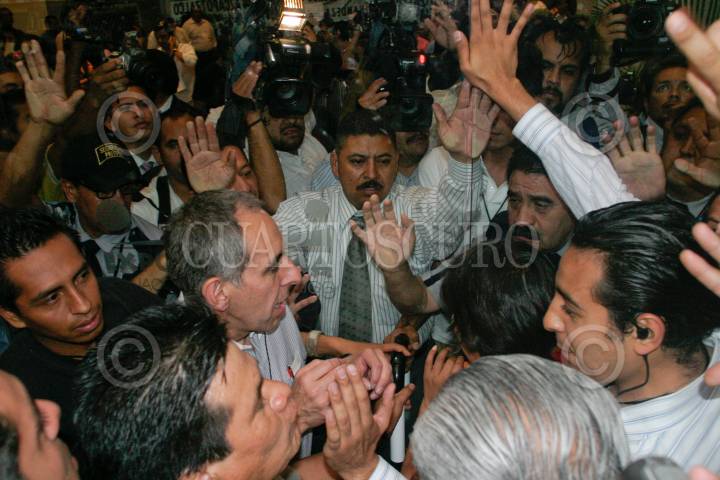 MÉXICO, D.F., 23NOVIEMBRE2007.- Alumnos de la universidad de Ayotzinapa encararon al ex-gobernador de Guerrero Rene Juarez Cisneros a la salida de la inaururación de la Casa Guerrerense. FOTO: SAÚL LÓPEZ/CUARTOSCURO.COM